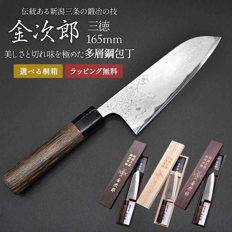 ■金属製品製造業の盛んな町として知られる新潟県三条市の鍛冶職人の手仕事による手造り包丁。丹念に鍛え抜かれた包丁・金次郎の切れ味をぜひ確かめてみてください。